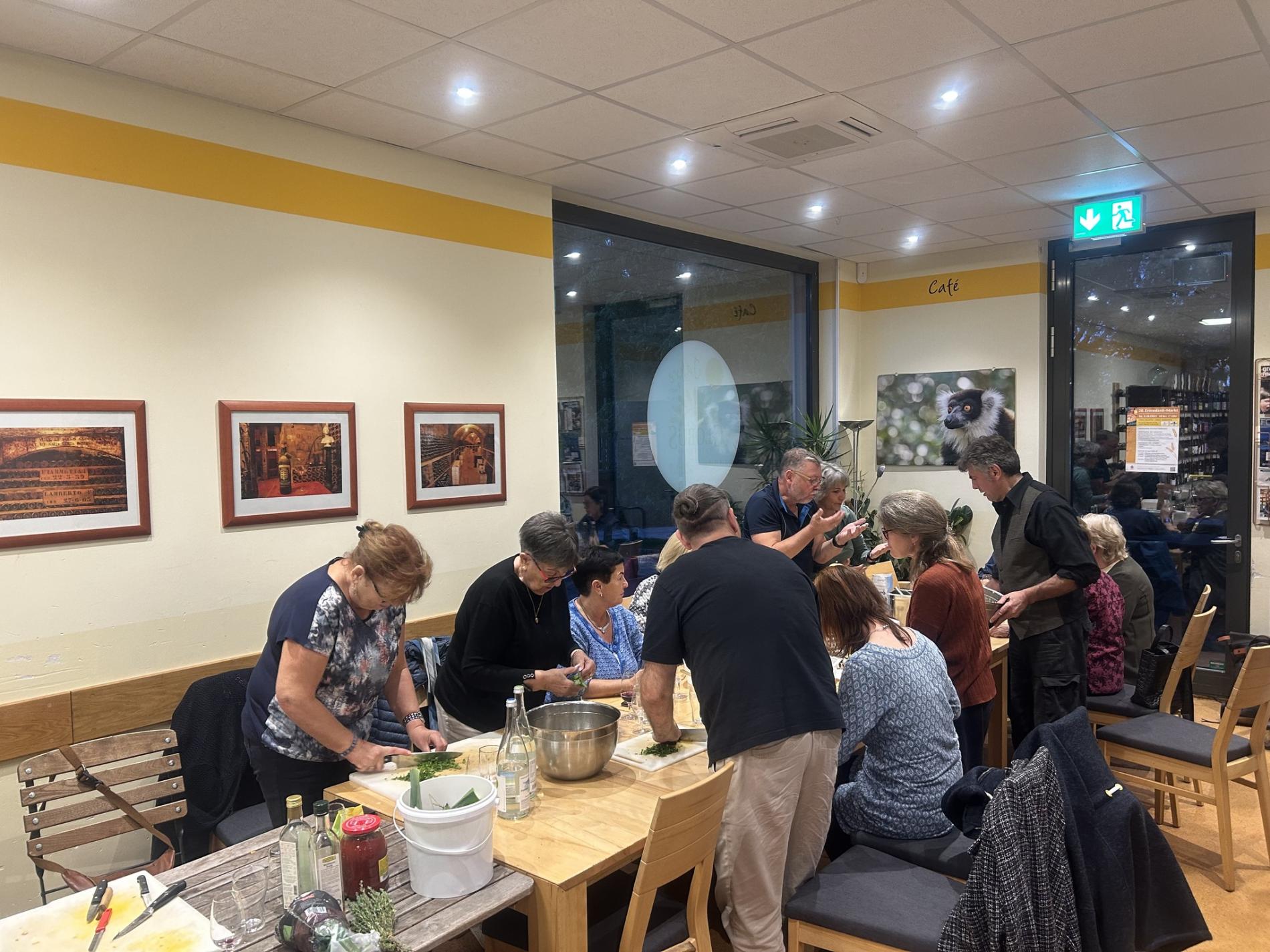 Anfang Oktober 2025 fand schon der zweite italienische Kochkurs mit Fabio bei uns statt. Es wurde fleißig geschnippelt, Teig geknetet, gerührt, Rezepte notiert und der ein oder andere Trick abgeschaut. Einen Teil der Kreationen findet ihr auf den Fotos und wer Lust hat, selbst einmal dabei zu sein (und die Köstlichkeiten dann natürlich auch zu verspeisen), der melde sich gerne, damit wir euch zu unserem Veranstaltungsmailing hinzufügen können.